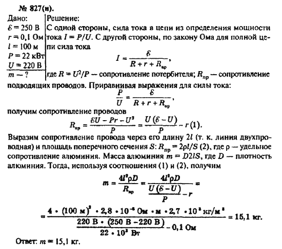 Решения домашних заданий по физике 10, 11 класс Рымкевич А.П. 827(n) упражнение Задачник