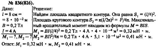 Решения домашних заданий по физике 10, 11 класс Рымкевич А.П. 836(826) упражнение Задачник