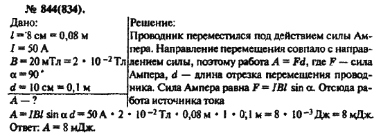 Решения домашних заданий по физике 10, 11 класс Рымкевич А.П. 844(834) упражнение Задачник