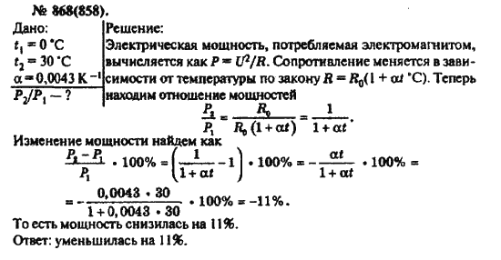 Решения домашних заданий по физике 10, 11 класс Рымкевич А.П. 868(858) упражнение Задачник