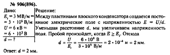Решения домашних заданий по физике 10, 11 класс Рымкевич А.П. 906(896) упражнение Задачник