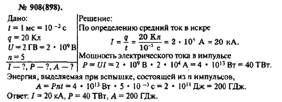 Решения домашних заданий по физике 10, 11 класс Рымкевич А.П. 908(898) упражнение Задачник