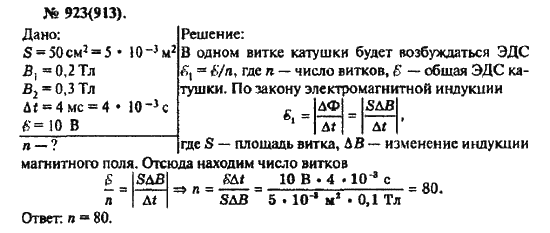 Решения домашних заданий по физике 10, 11 класс Рымкевич А.П. 923(913) упражнение Задачник
