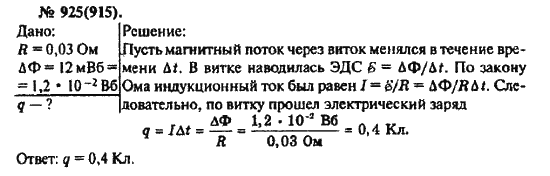 Решения домашних заданий по физике 10, 11 класс Рымкевич А.П. 925(915) упражнение Задачник