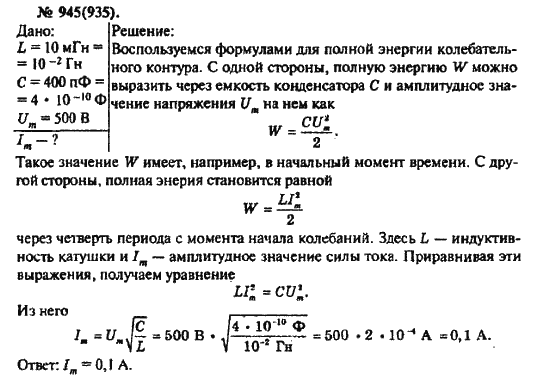 Решения домашних заданий по физике 10, 11 класс Рымкевич А.П. 945(935) упражнение Задачник