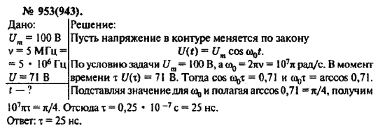Решения домашних заданий по физике 10, 11 класс Рымкевич А.П. 953(943) упражнение Задачник