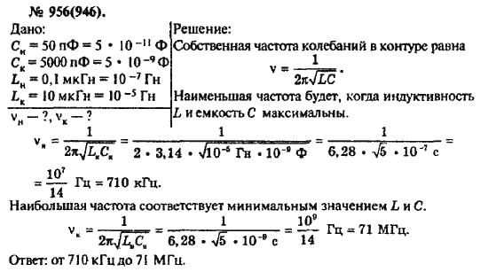 Решения домашних заданий по физике 10, 11 класс Рымкевич А.П. 956(946) упражнение Задачник