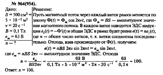 Решения домашних заданий по физике 10, 11 класс Рымкевич А.П. 964(954) упражнение Задачник