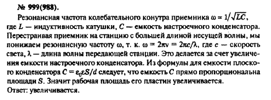 Решения домашних заданий по физике 10, 11 класс Рымкевич А.П. 999(988) упражнение Задачник