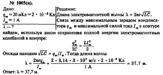 Решения домашних заданий по физике 10, 11 класс Рымкевич А.П. 1005(n) упражнение Задачник