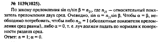 Решения домашних заданий по физике 10, 11 класс Рымкевич А.П. 1039(1025) упражнение Задачник