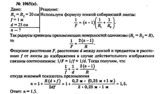 Решения домашних заданий по физике 10, 11 класс Рымкевич А.П. 1065(n) упражнение Задачник