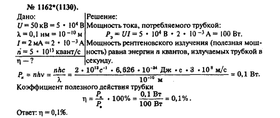Решения домашних заданий по физике 10, 11 класс Рымкевич А.П. 1162(1130) упражнение Задачник