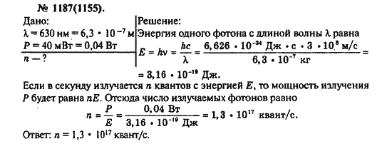 Решения домашних заданий по физике 10, 11 класс Рымкевич А.П. 1187(1155) упражнение Задачник