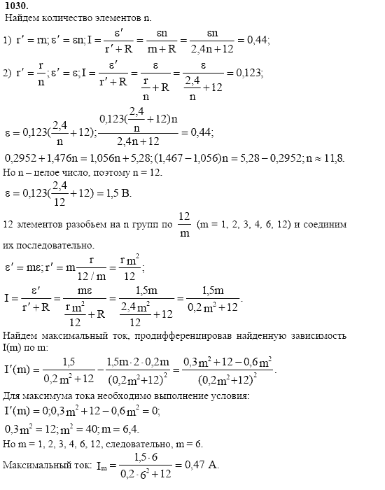 Решения домашних заданий по физике 10, 11 класс Степанова Г.Н. 1030 упражнение Сборник задач по физике