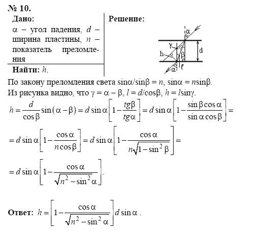 Решения домашних заданий по физике 11 класс Громов С.В. 10 упражнение Оптика. Тепловые явления. Строение и свойства вещества.