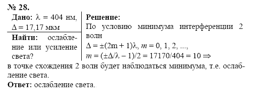 Решения домашних заданий по физике 11 класс Громов С.В. 28 упражнение Оптика. Тепловые явления. Строение и свойства вещества.