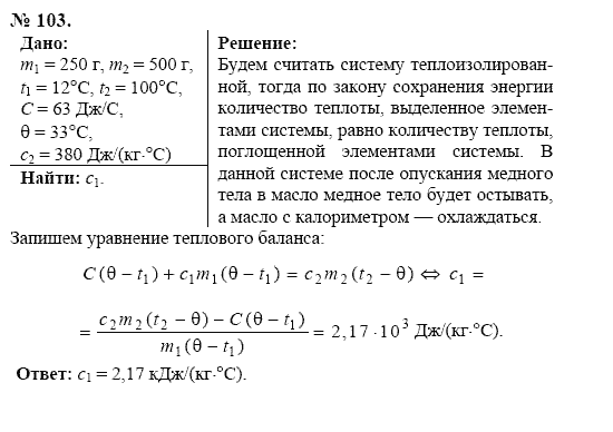 Решения домашних заданий по физике 11 класс Громов С.В. 103 упражнение Оптика. Тепловые явления. Строение и свойства вещества.