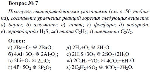 Решения домашних заданий по химии 8 класс Рудзитис Г.Е., Фельдман Ф.Г. 7 упражнение