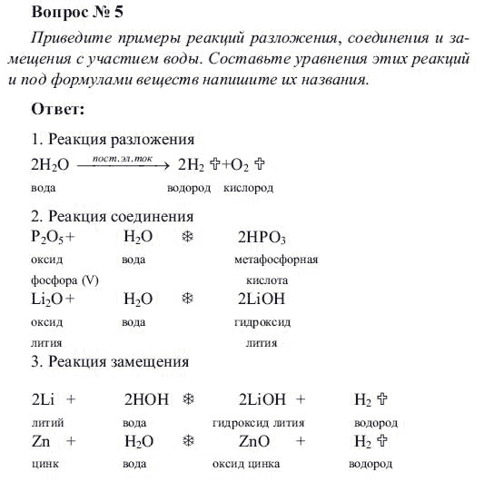 Решения домашних заданий по химии 8 класс Рудзитис Г.Е., Фельдман Ф.Г. 5 упражнение