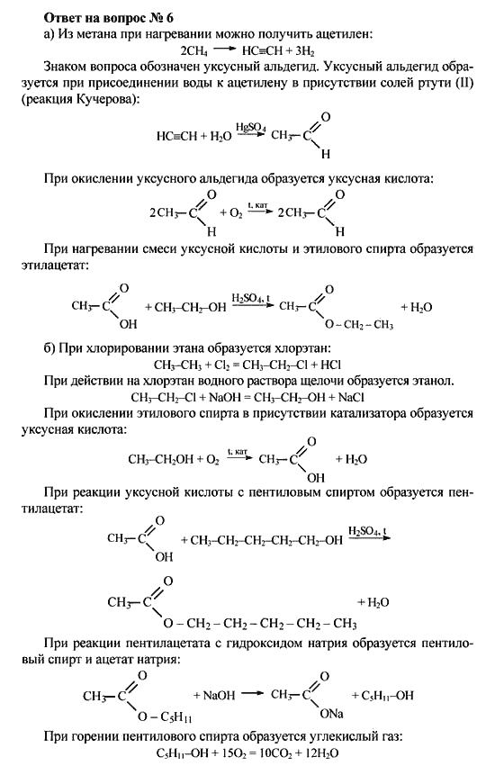 Решения домашних заданий по химии 10 класс Рудзитис Г.Е., Фельдман Ф.Г. otvyetnavoproc№6 упражнение