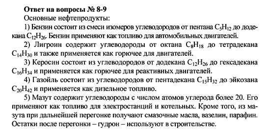 Решения домашних заданий по химии 10 класс Рудзитис Г.Е., Фельдман Ф.Г. otvyetnavoproc№8-9 упражнение
