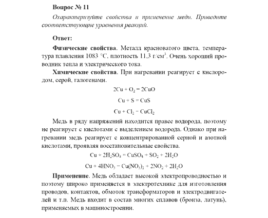 Решения домашних заданий по химии 11 класс Рудзитис Г.Е., Фельдман Ф.Г. voproc№11 упражнение