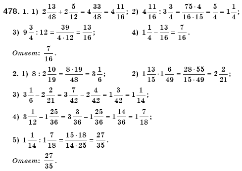 Решения домашних заданий по математике 6 класс Мерзляк, Полонский, Якир 478 упражнение