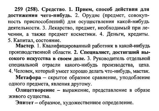 Решения домашних заданий по русскому языку 5 класс Разумовская М.М., С.И. Львова, В.И. Капинос 259(258) упражнение