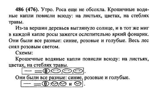 Решения домашних заданий по русскому языку 5 класс Разумовская М.М., С.И. Львова, В.И. Капинос 486(476) упражнение