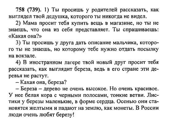 Решения домашних заданий по русскому языку 5 класс Разумовская М.М., С.И. Львова, В.И. Капинос 758(739) упражнение