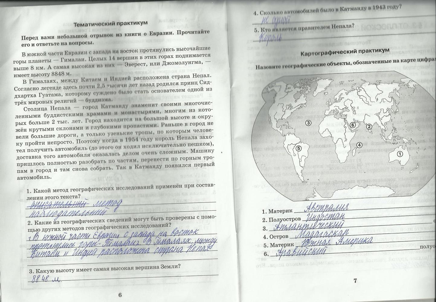 Решения домашних заданий по географии 5 класс Домогацких 6-7 упражнение рабочая тетрадь