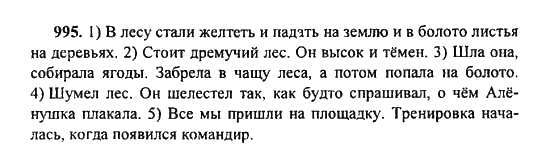 Решения домашних заданий по русскому языку 5 класс Львова С.И., Львов В.В. 995 упражнение