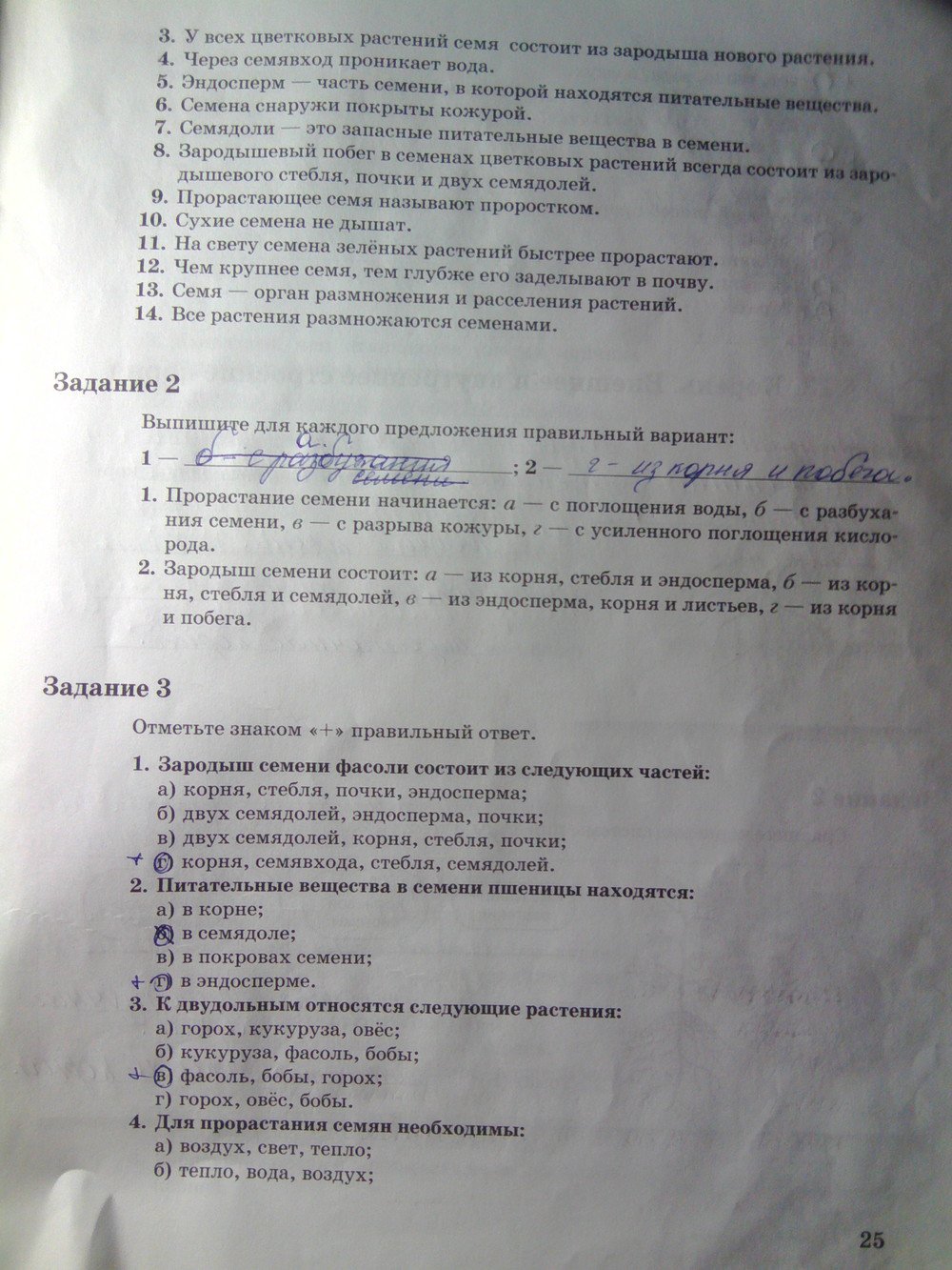 Решения домашних заданий по биологии 6 класс Пономарева 25 упражнение рабочая тетрадь 1 и 2 часть