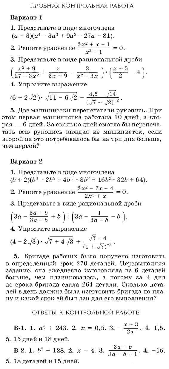 Решения домашних заданий по алгебре 8 класс Муравин, Муравин, Муравина Пробная контрольная работа упражнение