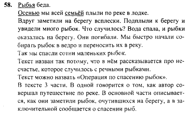 Решения домашних заданий по русскому языку 3 класс Рамзаева 58 упражнение 1 и 2 Часть