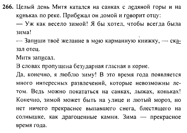 Решения домашних заданий по русскому языку 3 класс Рамзаева 266 упражнение 1 и 2 Часть