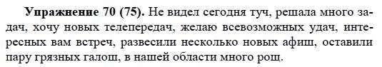 Решения домашних заданий по русскому языку 5 класс Купалова А.Ю. 70(75) упражнение