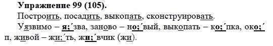 Решения домашних заданий по русскому языку 5 класс Купалова А.Ю. 99(105) упражнение