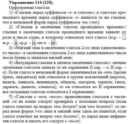Решения домашних заданий по русскому языку 5 класс Купалова А.Ю. 114(120) упражнение