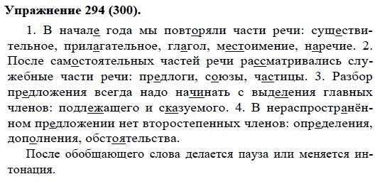 Решения домашних заданий по русскому языку 5 класс Купалова А.Ю. 294(300) упражнение