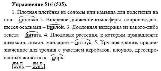 Решения домашних заданий по русскому языку 5 класс Купалова А.Ю. 516(535) упражнение