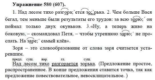 Решения домашних заданий по русскому языку 5 класс Купалова А.Ю. 580(607) упражнение