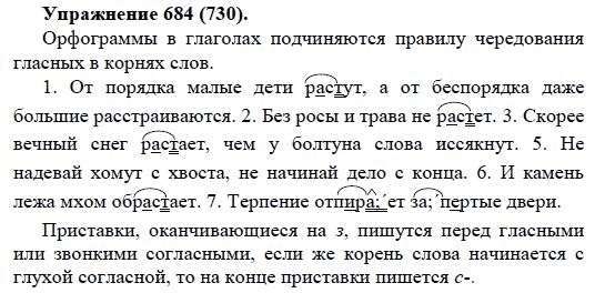 Решения домашних заданий по русскому языку 5 класс Купалова А.Ю. 684(730) упражнение