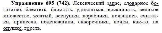 Решения домашних заданий по русскому языку 5 класс Купалова А.Ю. 695(742) упражнение