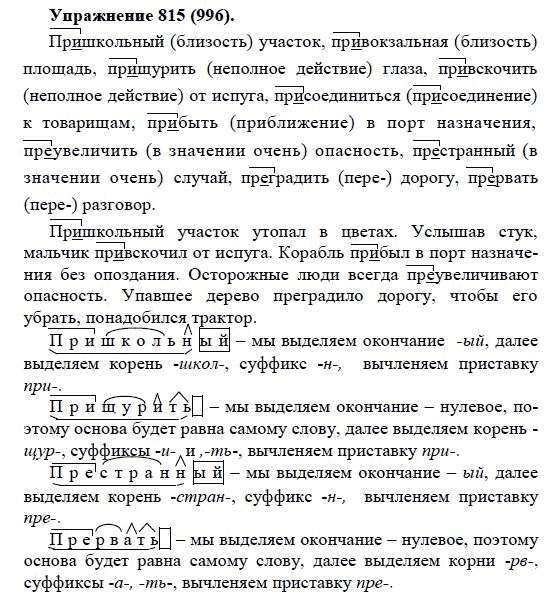 Решения домашних заданий по русскому языку 5 класс Купалова А.Ю. 815(996) упражнение