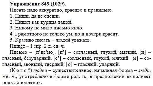 Решения домашних заданий по русскому языку 5 класс Купалова А.Ю. 843(1029) упражнение