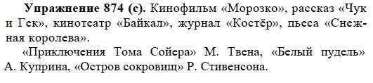 Решения домашних заданий по русскому языку 5 класс Купалова А.Ю. 874(c) упражнение