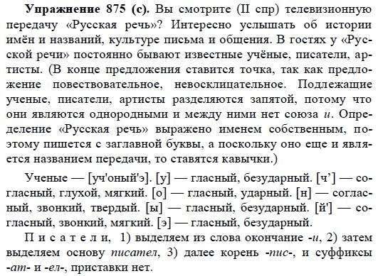 Решения домашних заданий по русскому языку 5 класс Купалова А.Ю. 875(c) упражнение