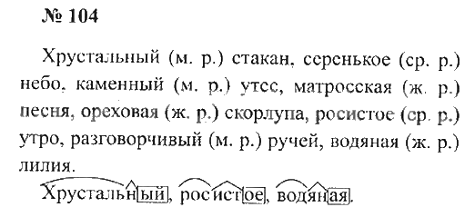 Решения домашних заданий по русскому языку 3 класс Канакина, Горецкий 104 упражнение Рабочая тетрадь, учебник 1 и 2 часть